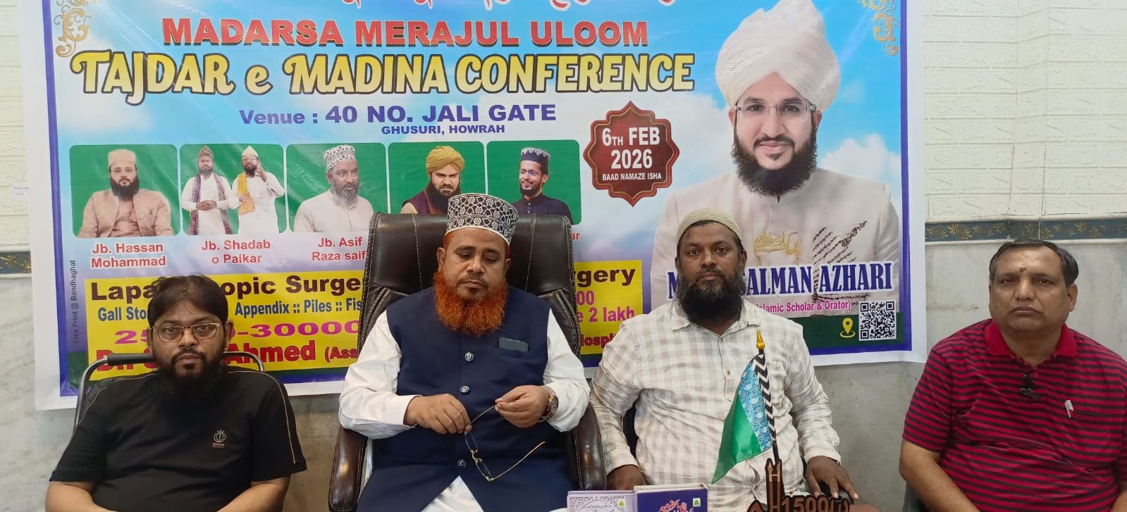 مدرسہ معراج العلوم کی جانب سے منعقدہ تاجدار مدینہ کانفرنس میں شرکت کرنے کےلئے مشہور و معروف اسلامک اسکالر اور مقرر حضرت مفتی سلما ن ازہری ہوڑہ تشریف لا رہے ہیں۔چھ فروری کو ہوڑہ کے گھسڑی کے چالیس نمبر جالی گیٹ کے وسیع میدان میں ہونے والی اس تاجدار مدینہ کانفرنس میں لوگوں سے شرکت کی اپیل کی گئی ہے۔ اس سلسلے میں علاقے کے مشہور اسکالر حافظ قیام الدین صاحب نے بتایا کہ ہر سال مدرسہ معراج العلوم کی جانب سے یہاں تاجدار مدینہ کانفرنس کا انعقاد کیا جا تاہے۔ اس سال مدرسہ والوں نے حضرت مفتی سلمان ازہری کو مہمان خصوصی و خاص مقرر کے طور پرلانے کا فیصلہ کیا ہے۔مفتی صاحب نے اس پر اپنی رضا مندی دے دی ہے۔کانفرنس بہترین طریقے سے او ر امن کے ساتھ ہواس کےلئے مفتی صاحب کی آمد سے لے کر اسٹیج تک لے جانے تک کے تمام مرحلے کو پوشیدہ رکھا گیا ہے۔کانفرنس کے لئے انتظامیہ سے اجازت لے لی گئی ہے۔ علاقے کے کونسلر اور ہوڑہ میونسپل کارپوریشن کے ایڈمنسٹریٹر ریاض احمد صاحب کو انتظامی امور کو دیکھنے کی ذمہ داری دی گئی ہے۔اس سلسلے میں آج ہوئی ایک میٹنگ میں حافظ قیام الدین صاحب نے بتایا کہ ہر سال یہاں مدرسہ سے فارغ ہونے والے حافظ قرآن کی دستار بندی ہوتی ہے۔ اس بار بھی ہوگی۔ مفتی صاحب کی تقریر کو آخر میں رکھا گیا ہے۔مفتی صاحب کے علاوہ جناب آصف رضا صاحب مقرر خا ص ہیں۔دستار بندی، نعت خوانی کے بعد تقریر کا پروگرام رکھا گیا ہے۔مفتی صاحب کی مقبولیت کو دیکھتے ہوئے جالی گیٹ کے موڑ پر پروگرام رکھا گیا ہے تاکہ چاروں طرف سے لوگ اس میں شامل ہوسکے۔علاقے کے تمام کلب والوں کو الگ الگ ذمہ داری دی گئی ہے۔ اس کے علاوہ جینٹ اسکرین بھی ہوگا۔ اگر لوگ جلسہ گاہ تک نہیں پہنچ پاتے ہیں تو وہ اسکرین پر جلسہ کے کارروائی کو دیکھ سکتے ہیں۔اس موقع پر موجود کمیٹی کے سکریٹری شکیل صاحب نے کہا کہ مفتی صاحب آمدکے بعد کی کارروائی کو ہم لوگوں نے راز میں رکھا ہے تاکہ کانفرنس کے دوران کسی طرح کی کوئی گڑ بڑی نہ ہو۔اس موقع پر موجود شہاب الدین صاحب نے لوگوں سے اپیل کی کہ وہ زیادہ سے زیادہ تعداد میں شامل ہوکر اس کانفرنس کو کامیاب بنائیں تاکہ مفتی سلمان ازہری صاحب اچھا تاثر لے کر یہاں سے جائیں۔ ہر دل عزیز رہنما و علاقے کے کونسلر ریاض احمد صاحب نے بتایا کہ ہر سال یہ کانفرنس ہوتی ہے۔اس بار مفتی سلمان ازہری کی آمد کی وجہ سے اس جلسے کا وقار مزید بڑھ گیا ہے۔کافی بھیڑ ہونے کا امکان ہے۔ اسے دیکھتے ہوئے انتظامیہ کو چوکس رہنے کو کہا گیا تاکہ بھیڑ کو کنٹرول میں رکھا جا سکے۔ انہوں نے کہا کہ ہماری کوشش ہوگی کہ یہ کانفرنس امن و شانتی سے ساتھ مکمل ہو۔