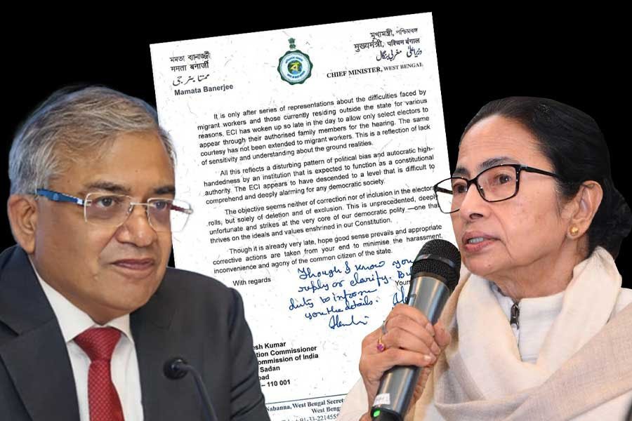 کولکاتا10جنوری ا: صرف پانچ دنوں کے وقفے کے بعد، مغربی بنگال کی وزیراعلیٰ ممتا بنرجی نے ایک بار پھر ایس آئی آر سماعت کے عمل میں خامیوں کا الزام لگاتے ہوئے چیف الیکشن کمشنر گیانیش کمار کو خط لکھا ہے۔ وزیراعلیٰ نے نوبل انعام یافتہ ماہر اقتصادیات امرتیہ سین، ورلڈ کپ جیتنے والے کرکٹر محمد شامی اور معروف شاعر جوئے گوسوامی کو سماعت کے نوٹس بھیجے جانے کو کمیشن کا ایک غیر انسانی اور غیر حساس اقدام قرار دیا ہے۔ انہوں نے اپنے خط میں واضح کیا کہ جس طریقے سے سماعتیں ہو رہی ہیں وہ غلط ہے اور اس عمل کو فوری طور پر بند کیا جانا چاہیے۔ خط کے آخر میں انہوں نے لکھا، "میں جانتی ہوں کہ شاید آپ اس خط کا جواب نہیں دیں گے، لیکن آپ کو تمام تفصیلات سے آگاہ کرنا میرا فرض ہے۔